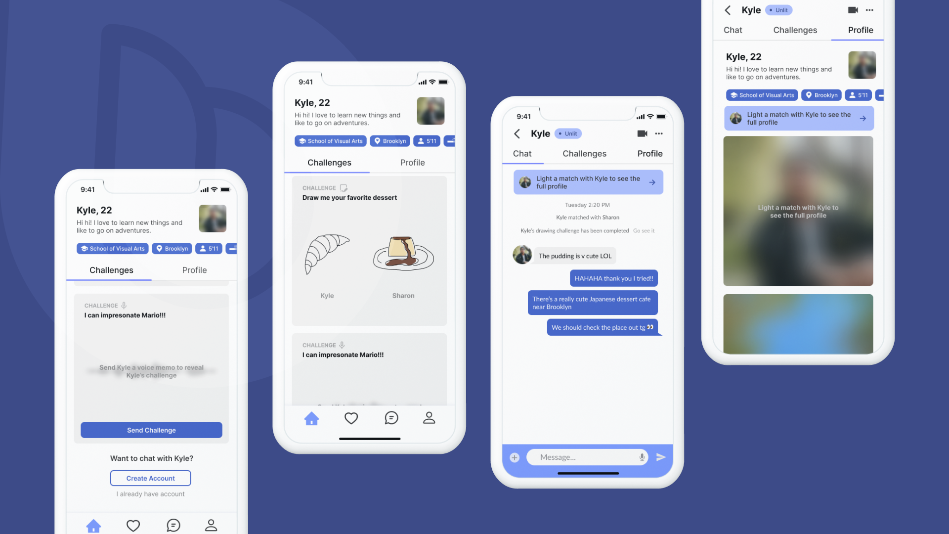 As a founding designer, I created a 0 to 1 user experience for a conceptual dating app utilizing friction as a main vehicle for intentional connection and interaction.