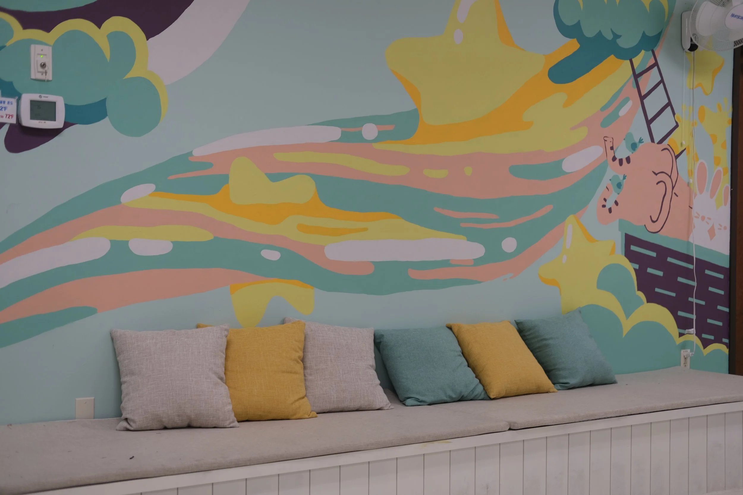 Dream Kids Mural was painted at a local children’s church based in Austin, TX. Targetting children from pre-K to upper elementary kids, this ~150 sq ft mural radiates positivity and warmth.